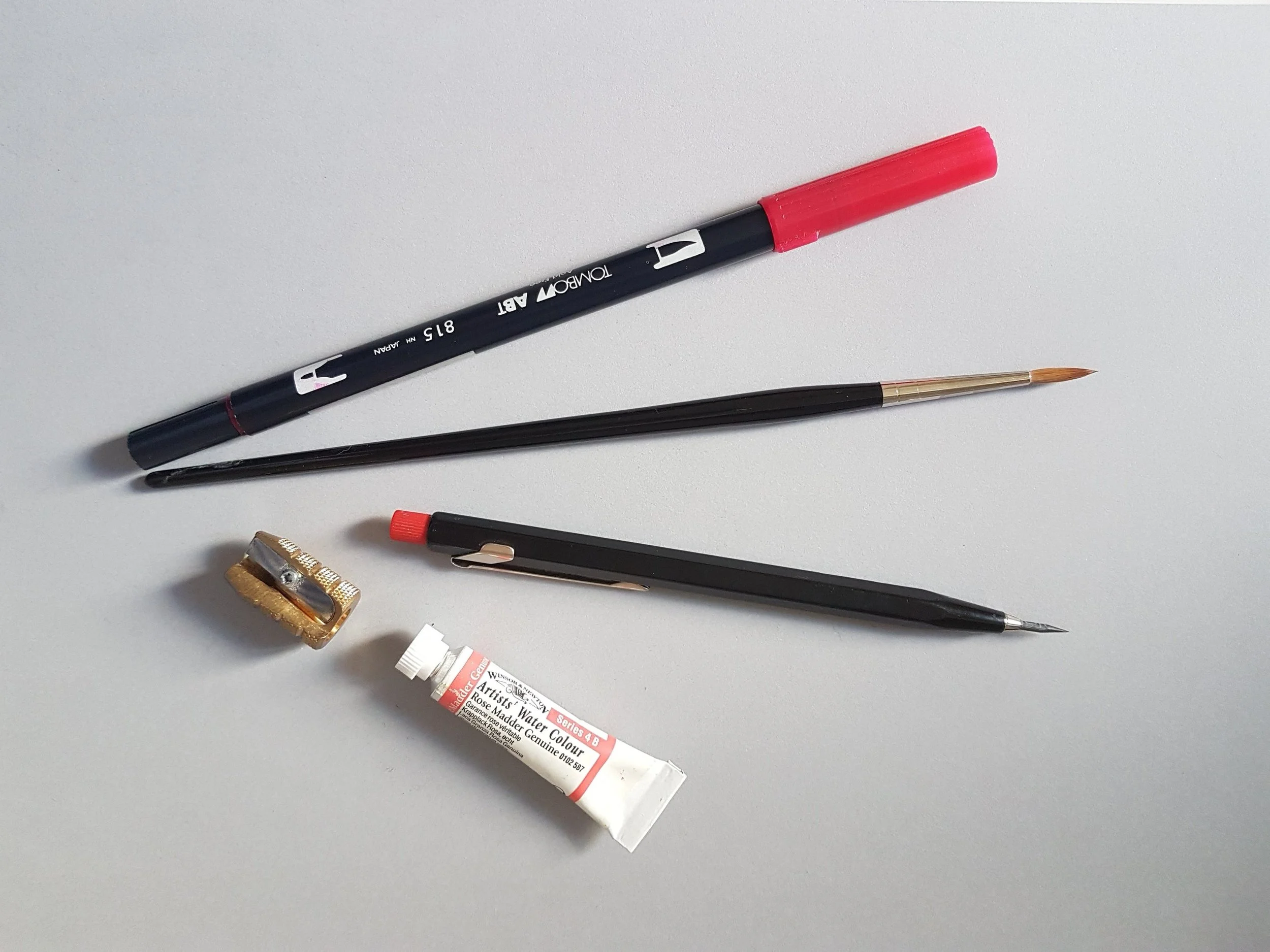 Brushes, gouache paints, grey paper, and precision tools.We provide a curated selection of references to guide you in choosing the right equipment and to support your learning. This list will support you throughout your training.